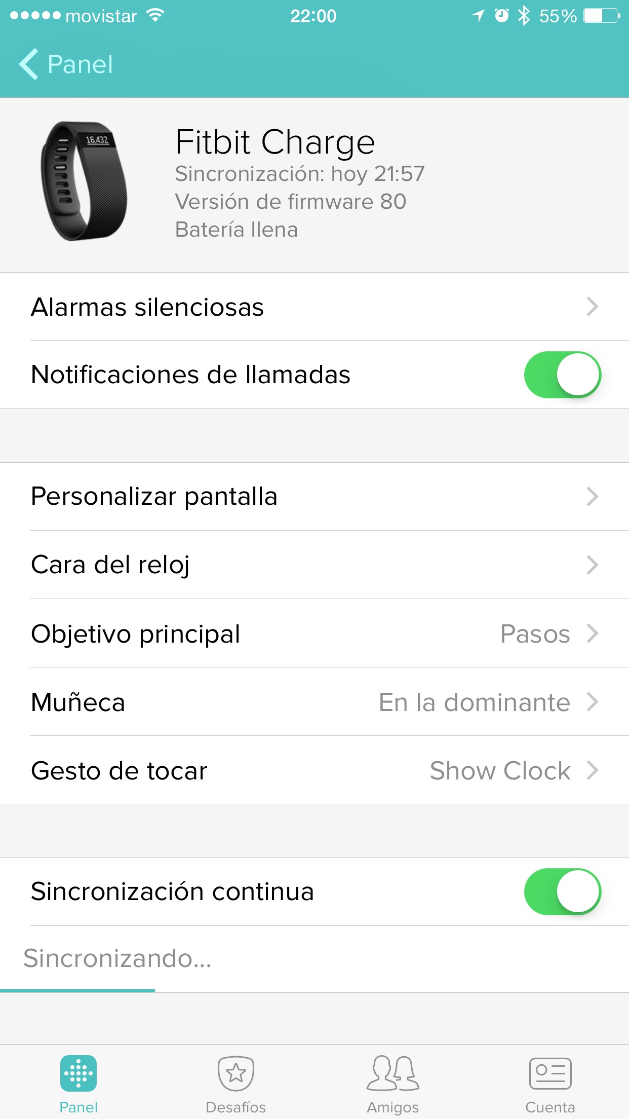 Una vez configurada, la pulsera Fitbit Charge se sincroniza de forma inalámbrica mediante Bluetooth 4.0 con un teléfono iPhone, Android o Windows Phone que se encuentre en un rango de unos cinco metros.