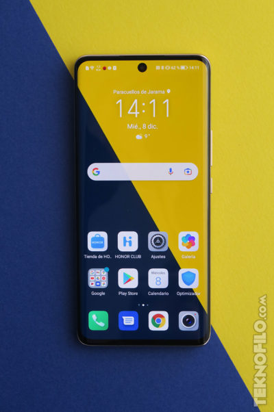 Honor ha incluido un recorte circular en la zona superior de la pantalla que alberga la cámara frontal. Este recorte es algo más grande que en otros buques insignia y, por su posición, puede interferir con la interfaz en algunos juegos al sostener el teléfono en horizontal, pero, en general, no resulta molesto.