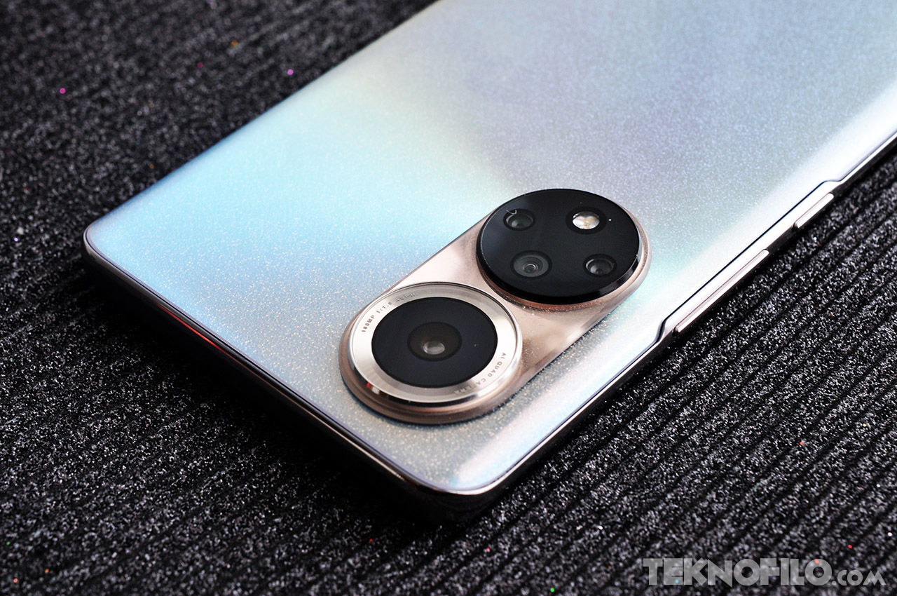 La parte trasera del Honor 50 está fabricada en cristal curvado a ambos lados, pero lo que realmente destaca es el enorme módulo de cámara formado por dos grandes círculos unidos entre sí. Mientras que el círculo superior alberga una sola cámara, el inferior es el hogar de tres cámaras y el flash.