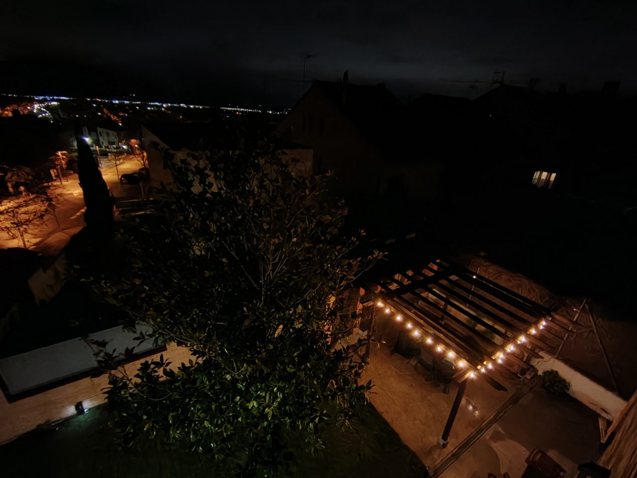 La calidad de imagen se mantiene alta cuando la luz escasea. Las capturas ofrecen una buena nitidez gracias a un nivel de ruido contenido, los colores se muestran vivos, los cielos se ven oscuros (no grises), las luces se mantienen bien confinadas sin destellos y el rango dinámico sigue siendo amplio. Ahora bien, en escenas muy oscuras, la imagen se ve menos iluminada de lo que me gustaría.