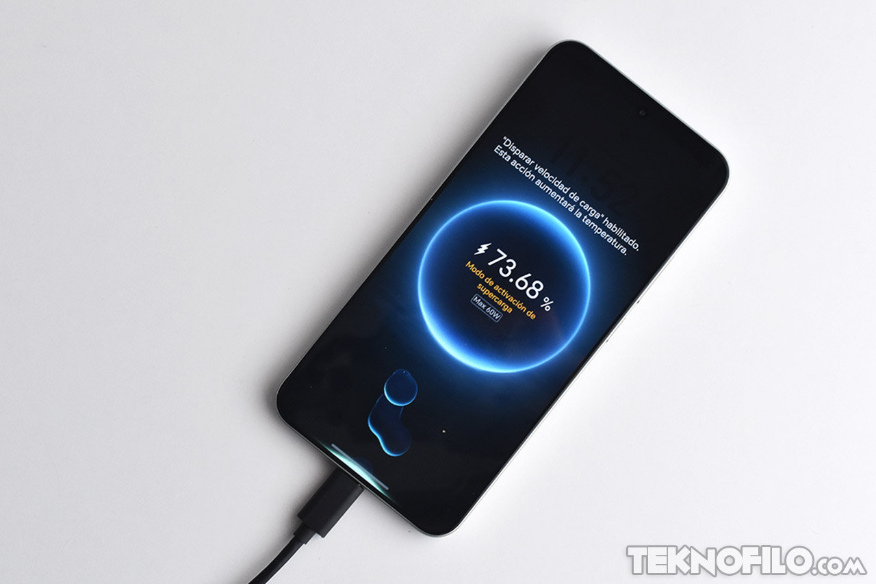Soporta carga rápida de 66 W. En mis pruebas, alcanza el 50% en unos 20 minutos y completa la carga en aproximadamente 57 minutos con un cargador compatible. El cargador no viene incluido en la caja.