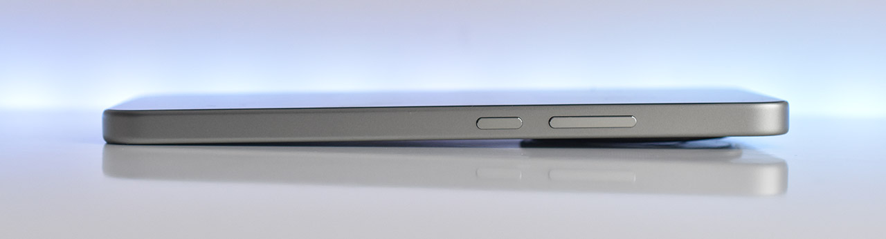 En el lateral derecho encontramos el botón de encendido y un botón alargado para el volumen.
