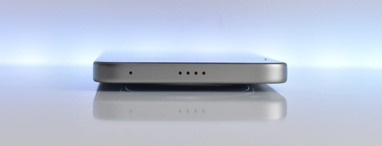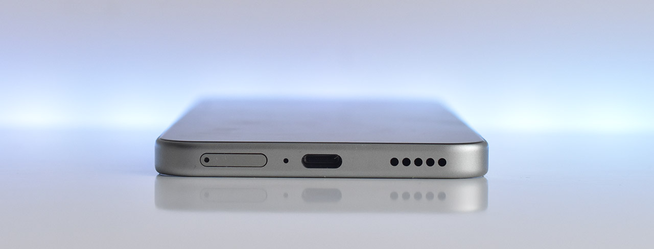 La parte inferior del teléfono posee un conector USB-C en el centro. A uno de los lados encontramos la ranura para albergar hasta dos tarjetas nano-SIM y, al otro lado, un altavoz.