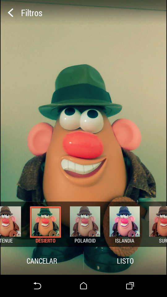 - Filtros, donde podemos seleccionar gris, negro, jardín, colorido, tenue, desierto, polaroid, Islandia, surf, bosque, rosa o personalizar