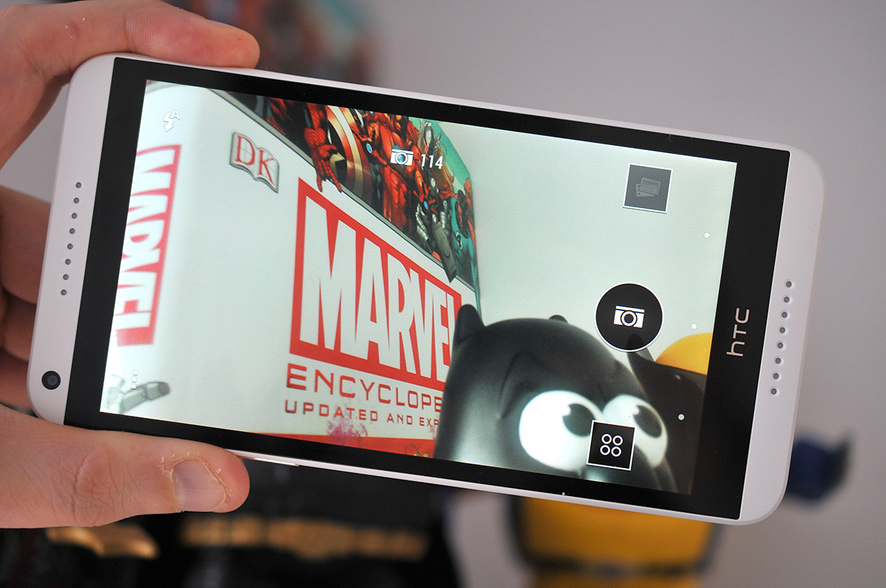 La cámara de fotos, a pesar de no poseer la tecnología UltraPixel propia de la gama alta de HTC, posee una elevada resolución y ofrece una calidad de imagen aceptable aunque su rendimiento en condiciones de poca luz es bastante mejorable.