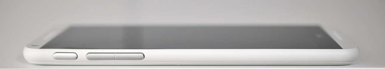 En el lateral izquierdo únicamente está el botón de encendido y el control de volumen, ambos en color plateado. Esta ubicación de los botones resulta algo extraña para los usuarios diestros, que están acostumbrados a pulsar los botones con el pulgar y tendrán que hacerlo con otros dedos.