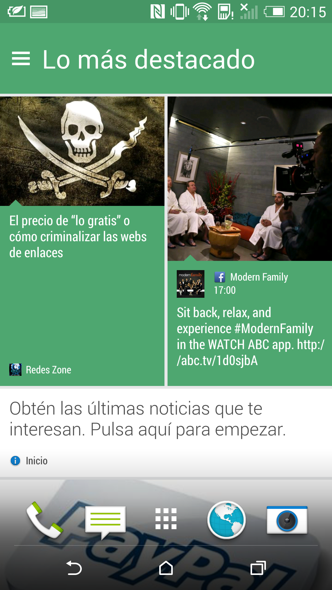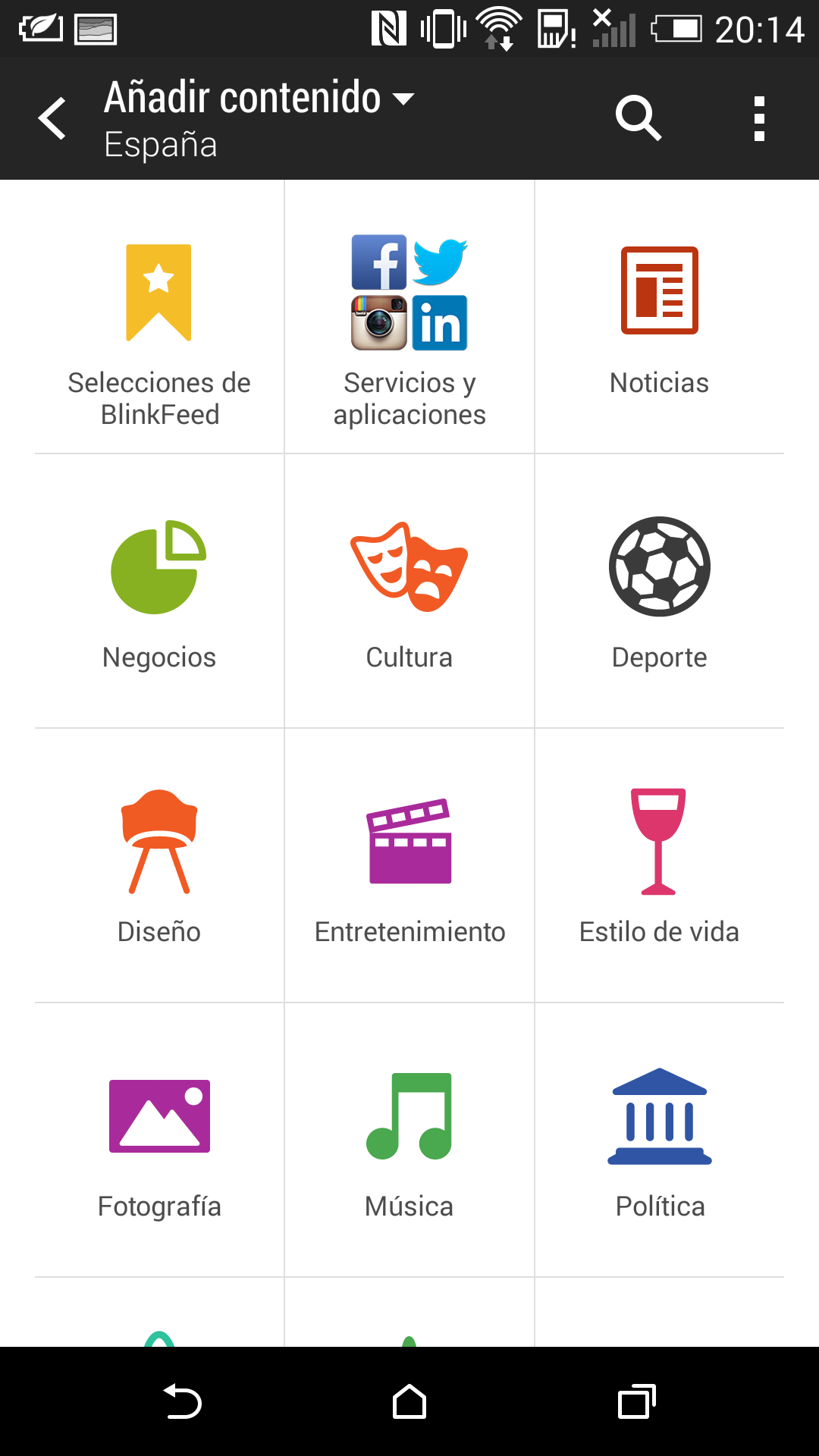 BlinkFeed permite seleccionar información de diversas fuentes en España: