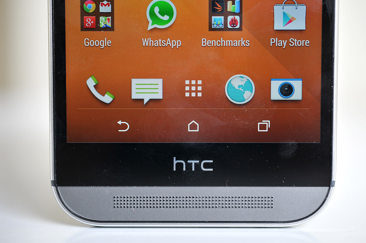 Esta disposición de los altavoces es la misma que ya vimos en el HTC One y marca la diferencia ya que el sonido suena fuerte y claro, a diferencia de otros teléfonos que incluyen el altavoz en la parte trasera, lo que hace que el sonido se amortigüe y distorsione cuando se apoya de aquel lado.