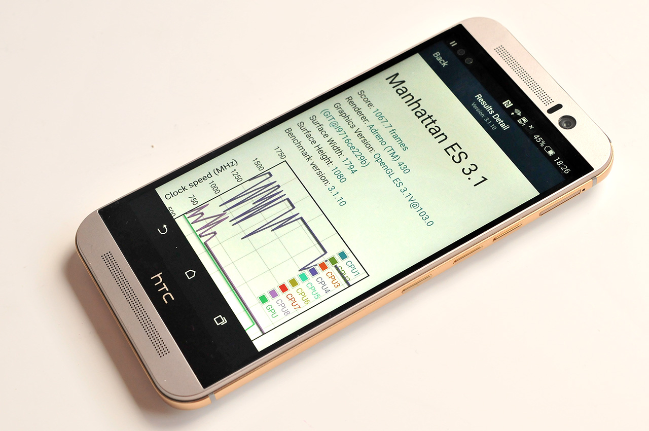 Estos resultados son elevados y sitúan al HTC One M9 como uno de los teléfonos más potentes del momento aunque no es la bestia en potencia que hubiera cabido esperar dado el procesador que posee. El HTC One M9 queda ensombrecido en muchos tests por el Galaxy S6 edge, cuyo procesador Exynos 7420 es extremadamente potente.