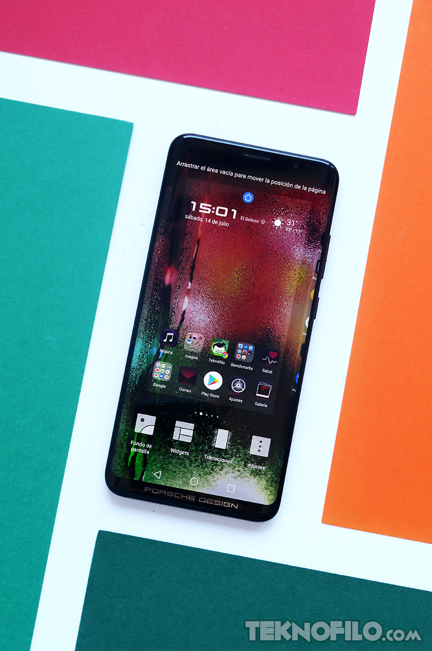 Si no fuera por el logotipo de «PORSCHE DESIGN» que está colocado en el marco inferior, el Huawei Mate RS podría pasar perfectamente por un Samsung Galaxy S9+ ya que ambos smartphones presentan un frontal muy parecido.