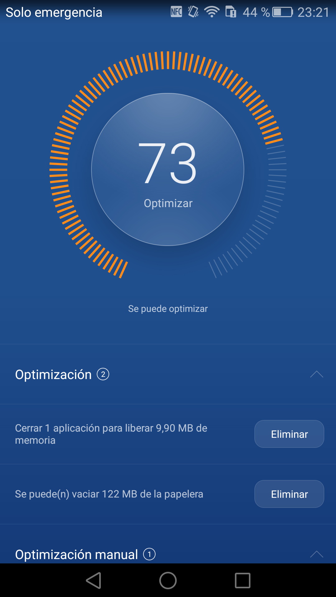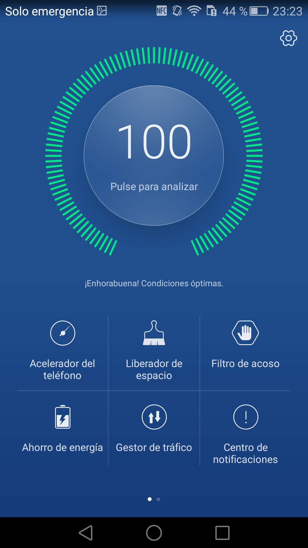 Huawei ha incorporado una aplicación llamada Administrador del teléfono que analiza el estado del teléfono y ofrece diversas formas de optimizar el rendimiento del teléfono.