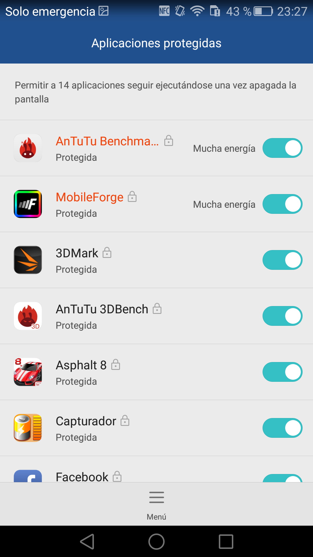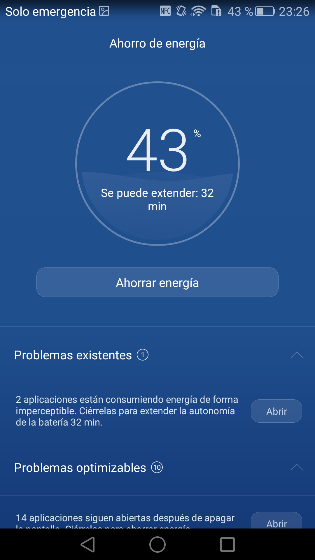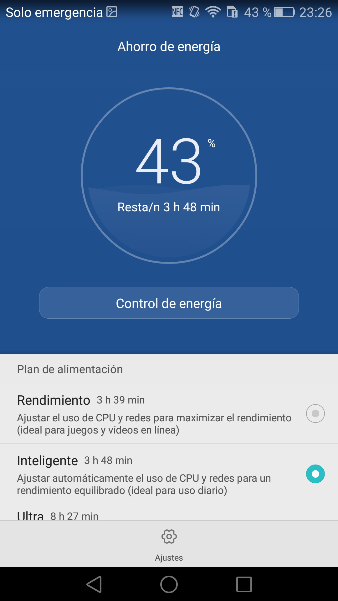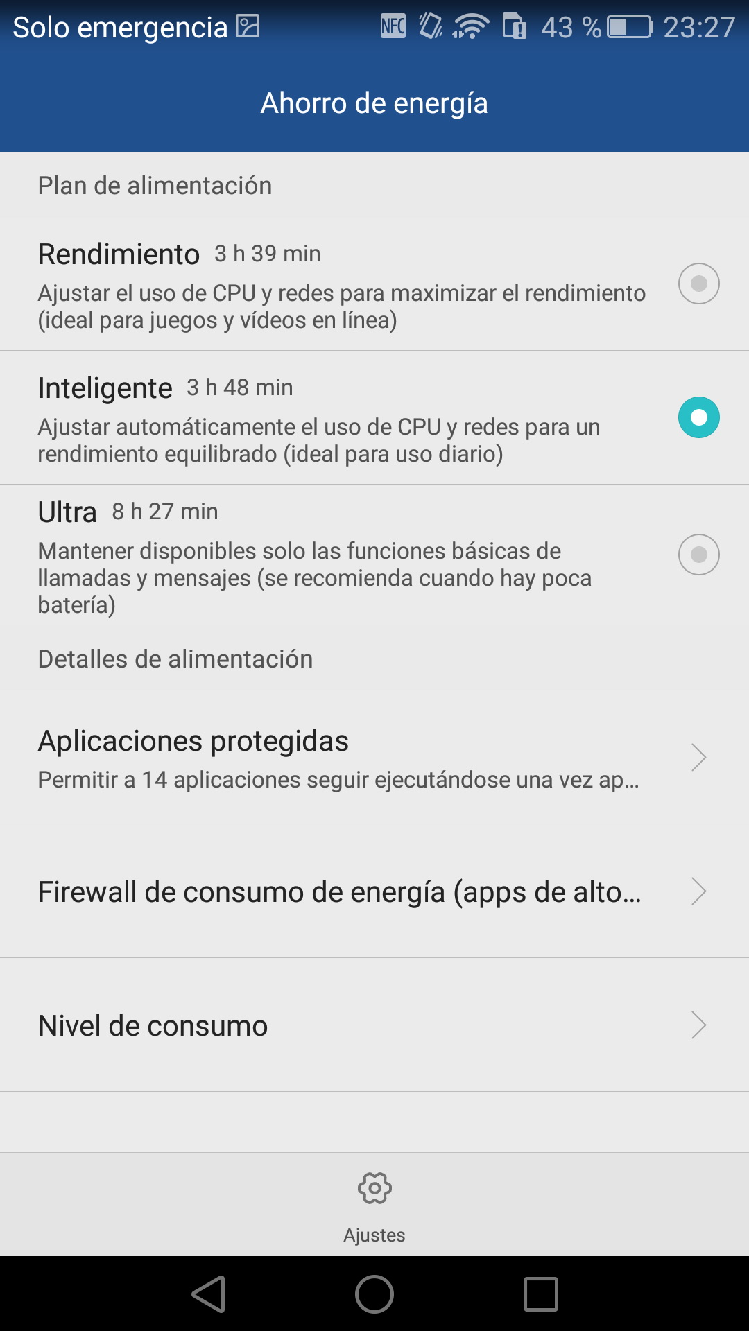 Huawei ha incorporadouna aplicación para gestionar el ahorro de energía. Esta aplicación permite escoger entre tres posibles modos de energía: