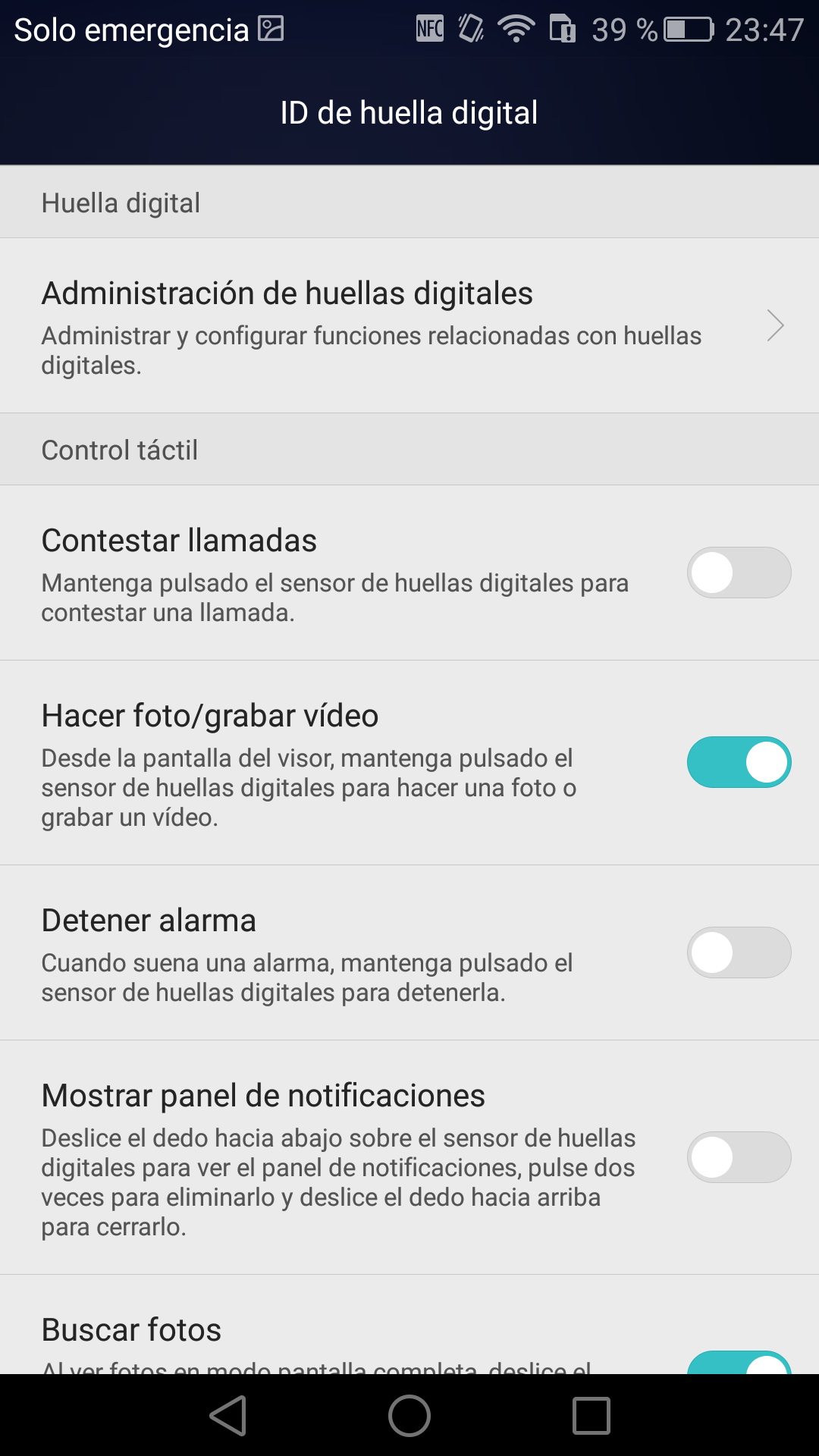 - Lector de huella dactilar en la parte de atrás reconocimiento muy rápido (aunque menos fiable que otros que hemos probado)