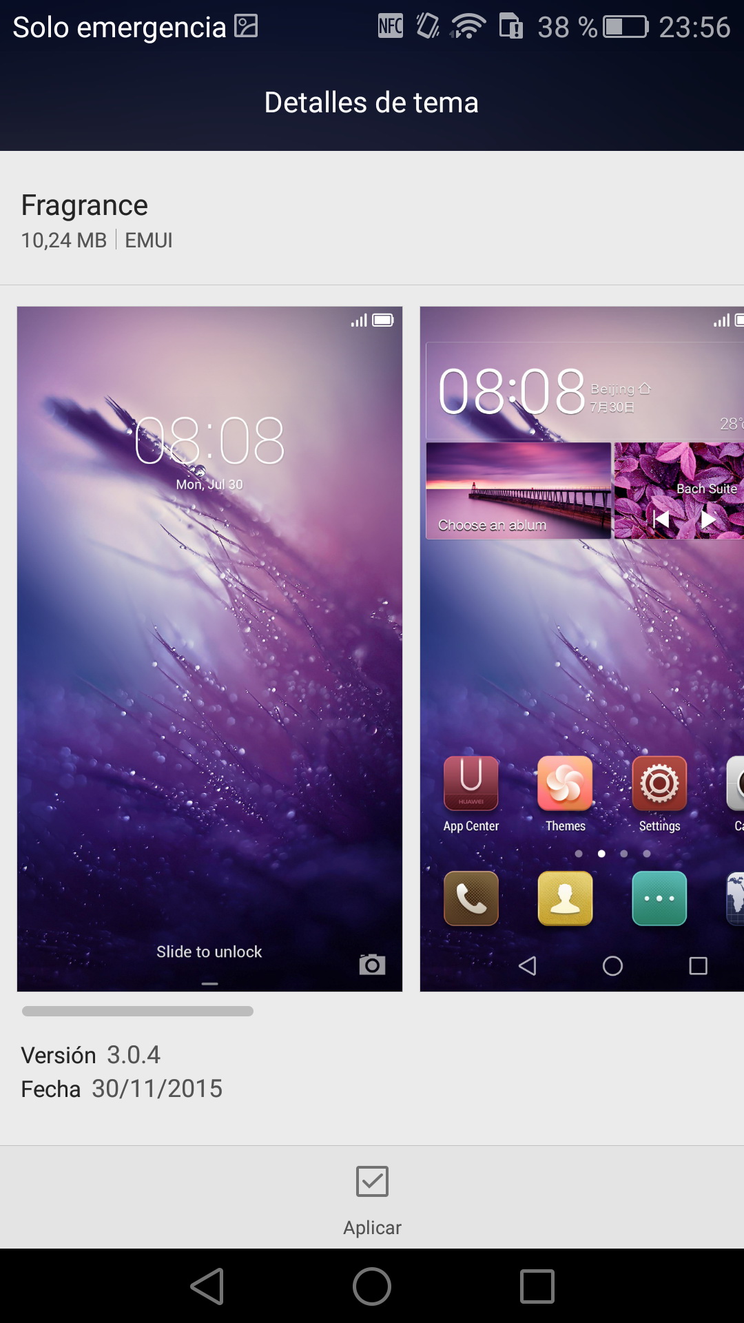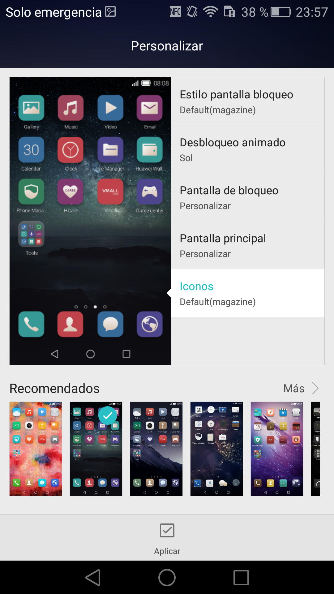 Los iconos se muestran redondeados y, en lugar de ser transparente, poseen un fondo que no queda demasiado bien. Huawei ofrece un gestor de temas, pero todos son bastante parecidos.