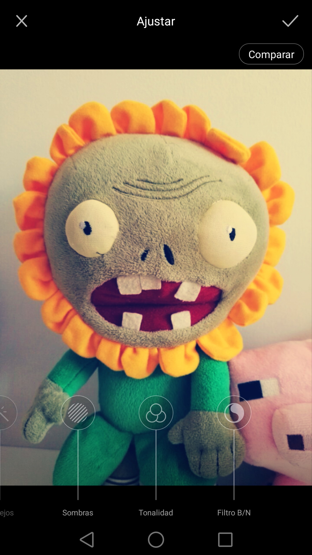 Esta aplicación también permite editar las imágenes mediante diversas herramientas como girar, filtrar (brillo, contraste, saturación, nitidez, reflejos, sombras, tonalidad, filtro B/N), ajustar, recortar, y belleza (suavizar, blanquear, adelgazar, nariz más fina, dientes blancos, agrandar ojos).
