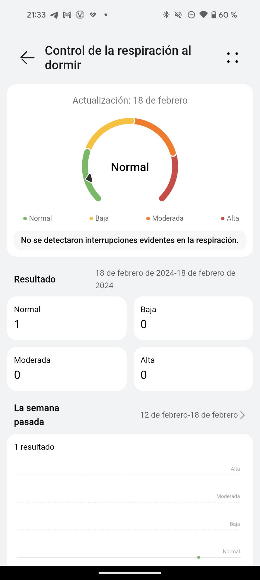 • Saturación de oxígeno en sangre, que muestra las mediciones de SpO2 a lo largo del día.