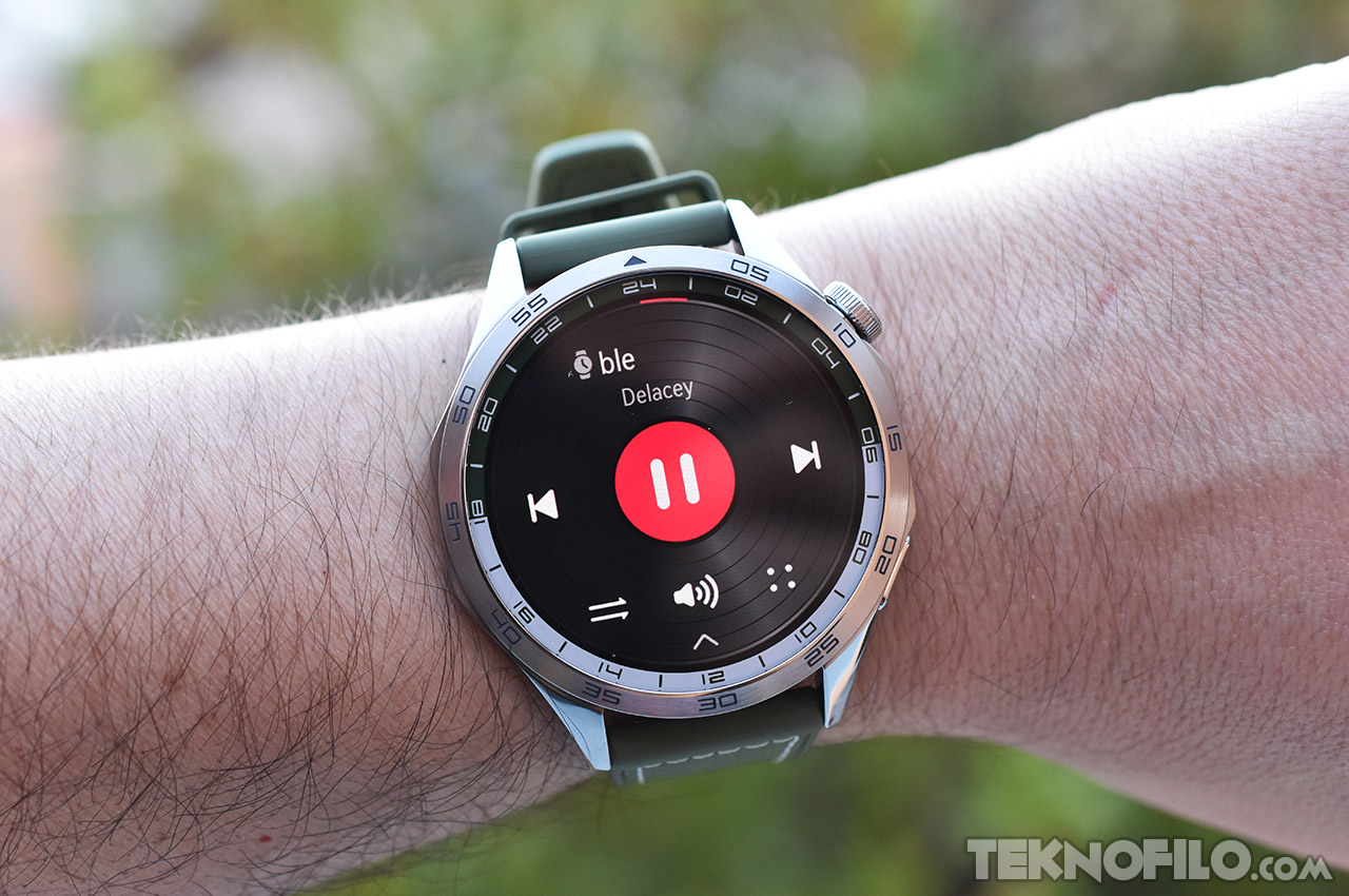 El reloj permite controlar la reproducción de música, bien sea la que se reproduce en el teléfono o la que está almacenada en el propio reloj. Lamentablemente, no cuenta con una opción para activar el disparo remoto de la cámara desde el reloj.
