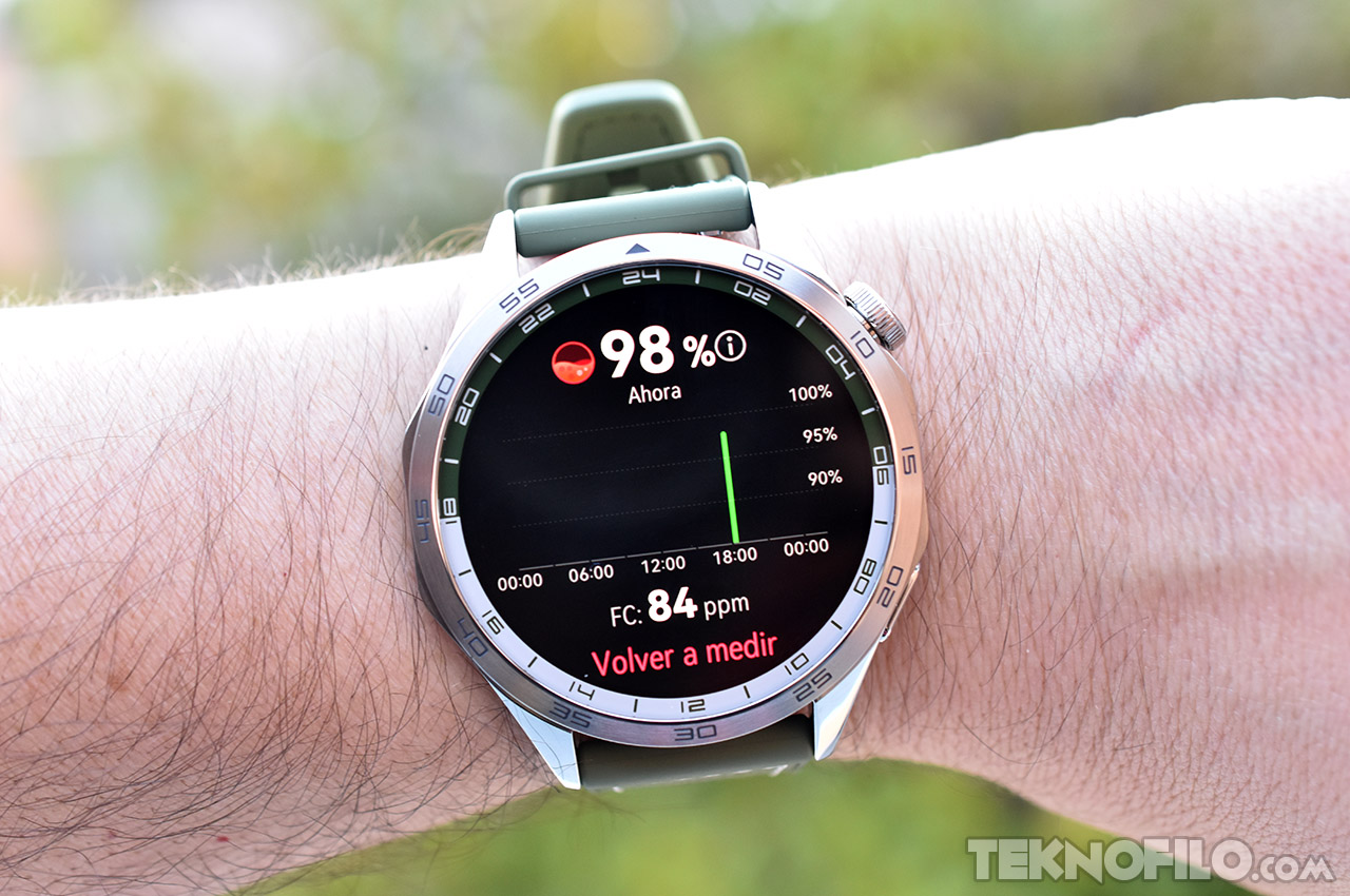 El reloj también puede estimar los niveles de SpO2 (la concentración de oxígeno en tu torrente sanguíneo), que siempre debería estar por encima del 90%. Las mediciones se toman a lo largo de todo el día y no solo cuando duermes, lo que supone una mejora respecto a algunos relojes y pulseras de actividad.