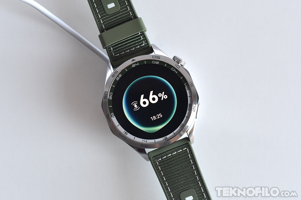 La carga del reloj se realiza a través de un cargador por contacto en cerca de dos horas, y también es posible cargar el reloj con un cargador inalámbrico Qi convencional.