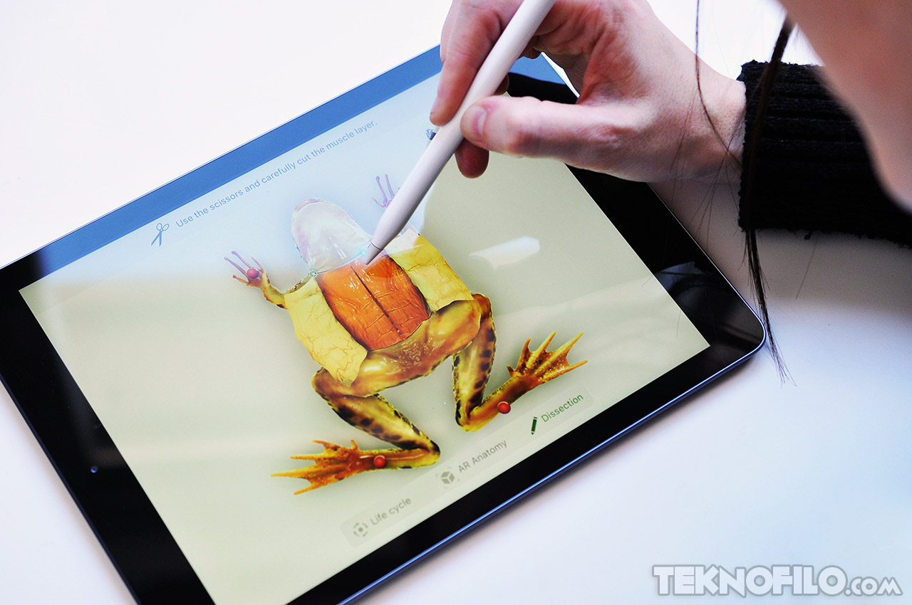 También es posible utilizar el Apple Pencil en apps de educación, como Froggipedia, que permite diseccionar una rana utilizando el lápiz, como si manejásemos un bisturí.