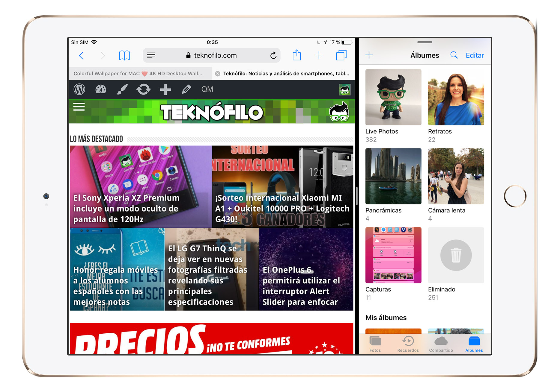 iOS ofrece funcionalidades especialmente pensadas para tablets, como la vista SplitView que permite utilizar dos apps a la vez, una al lado de la otra, o el dock donde podemos anclar apps frecuentes y acceder a las últimas que hemos abierto.