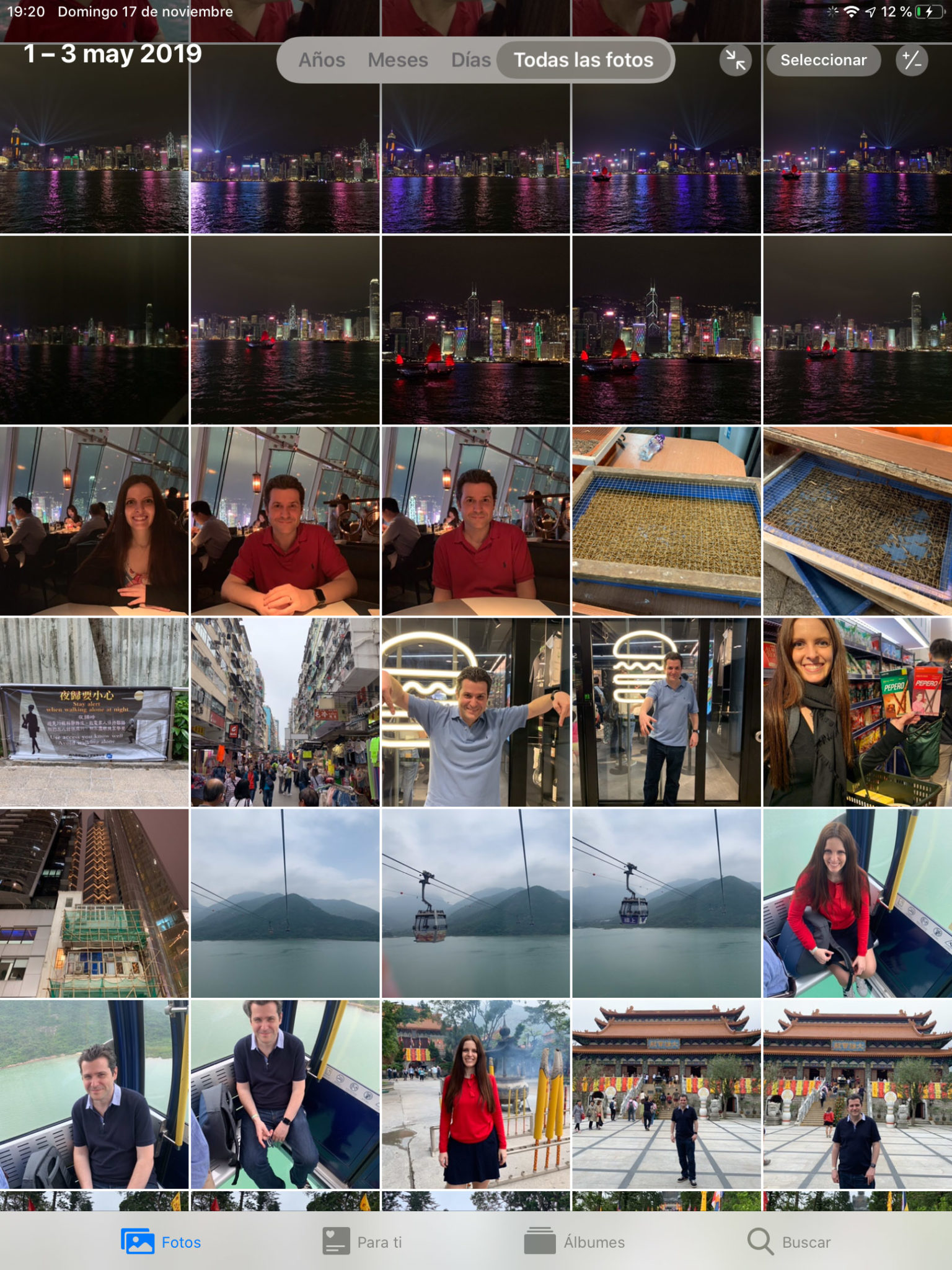 La vista Días es muy curiosa porque muestra todas las fotografías y vídeos por días, mostrando animaciones en algunas fotografías tomadas con la funcionalidad Live que guarda un pequeño vídeo antes y después de disparar. También existen vistas de Meses y Años que muestran fotografías destacadas en cada mes o año, que varía dependiendo del día que es hoy.