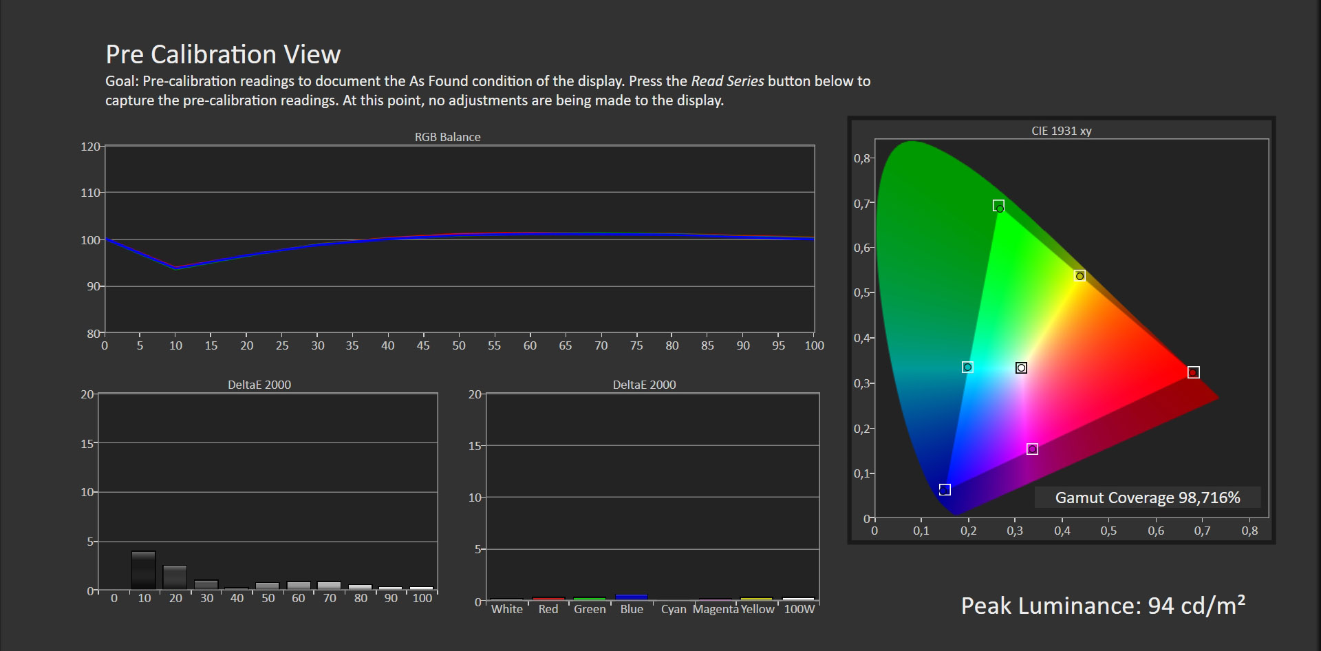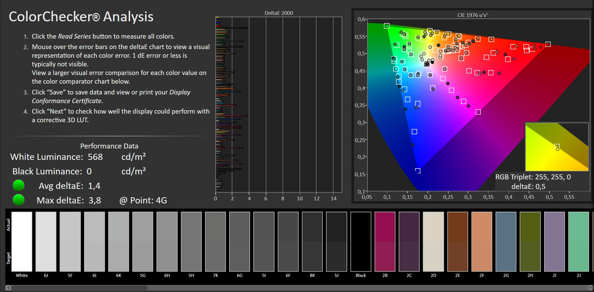 Para analizar la calidad de la pantalla hemos realizado diversas pruebas con el software profesional CalMAN Ultimate y un colorímetro X-Rite i1Display Pro.