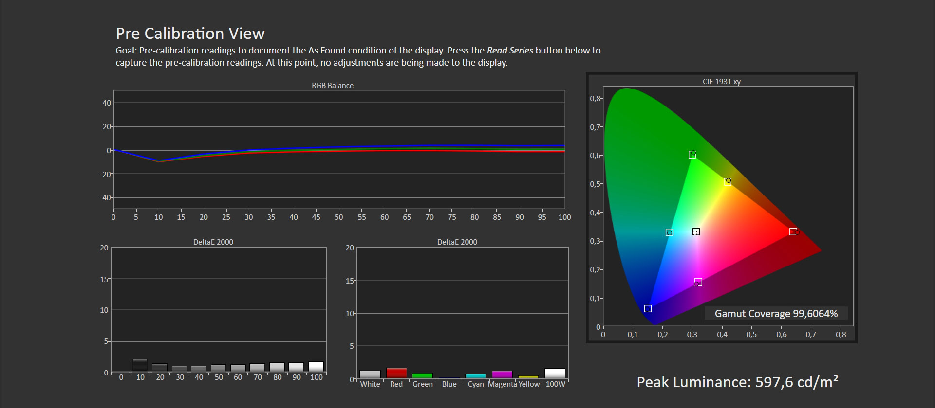 Para analizar la calidad de la pantalla hemos realizado diversas pruebas con el software profesional CalMAN Ultimate y un colorímetro X-Rite i1Display Pro.