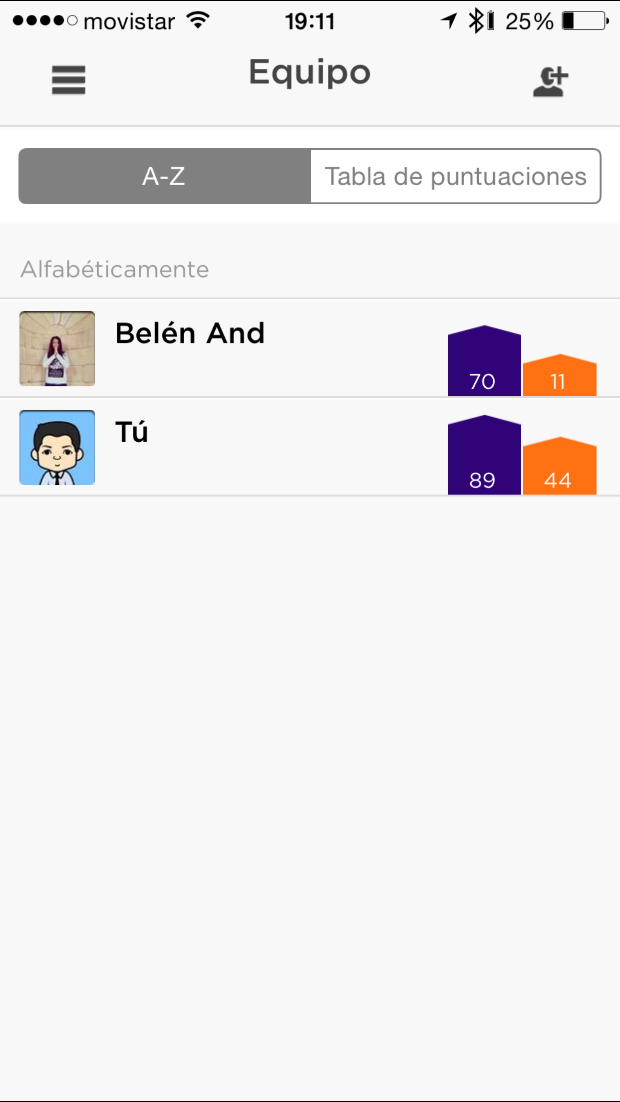 Centrándonos en la aplicación Jawbone UP, una función que puede motivar a algunos usuarios es la posibilidad de «competir» con amigos que también usen una pulsera Jawbone. Es posible crear un equipo y retar a duelos a nuestros contactos.