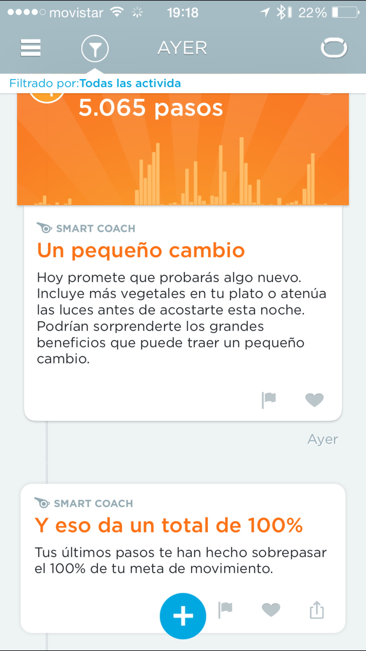 Una de las novedades de esta aplicación es Smart Coach, que ofrece información interesante sobre nuestro sueño o sobre nuestro rendimiento en comparación con datos históricos. Estos consejos se pueden configurar para que lleguen como notificaciones, y también es posible que la pulsera UP3 vibre cuando un nuevo consejo esté listo.