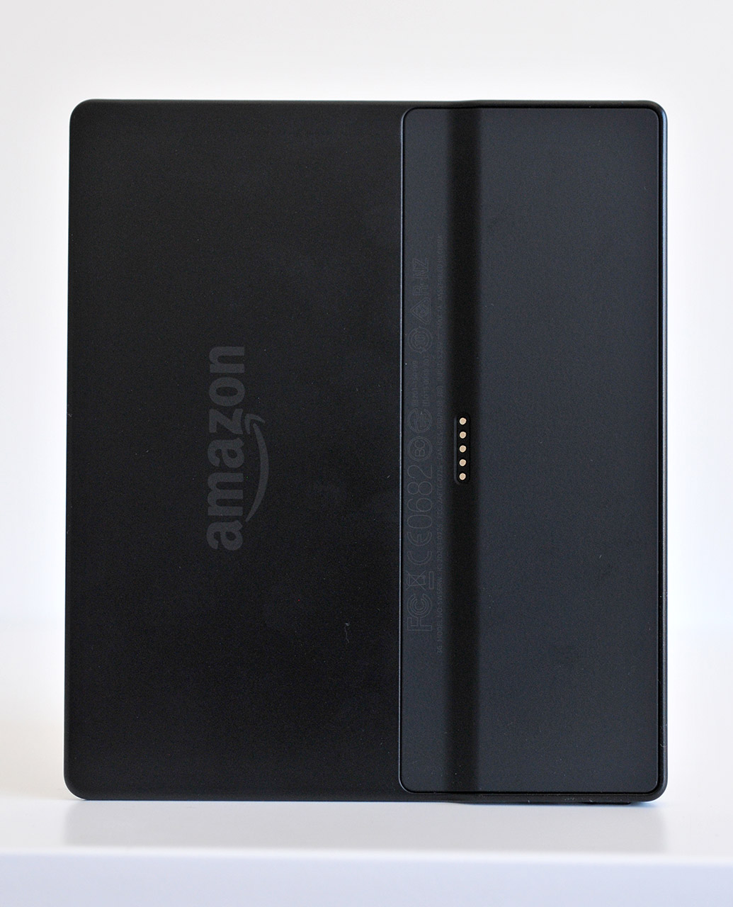 En la parte izquierda encontramos el logotipo de Amazon, que está grabado en posición vertical.