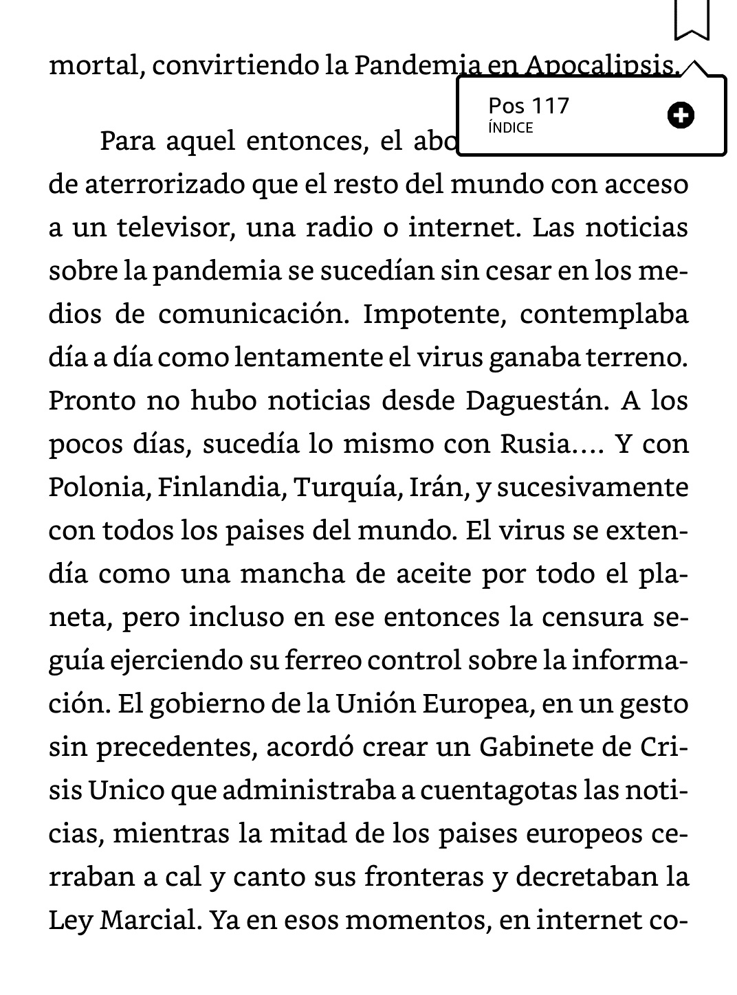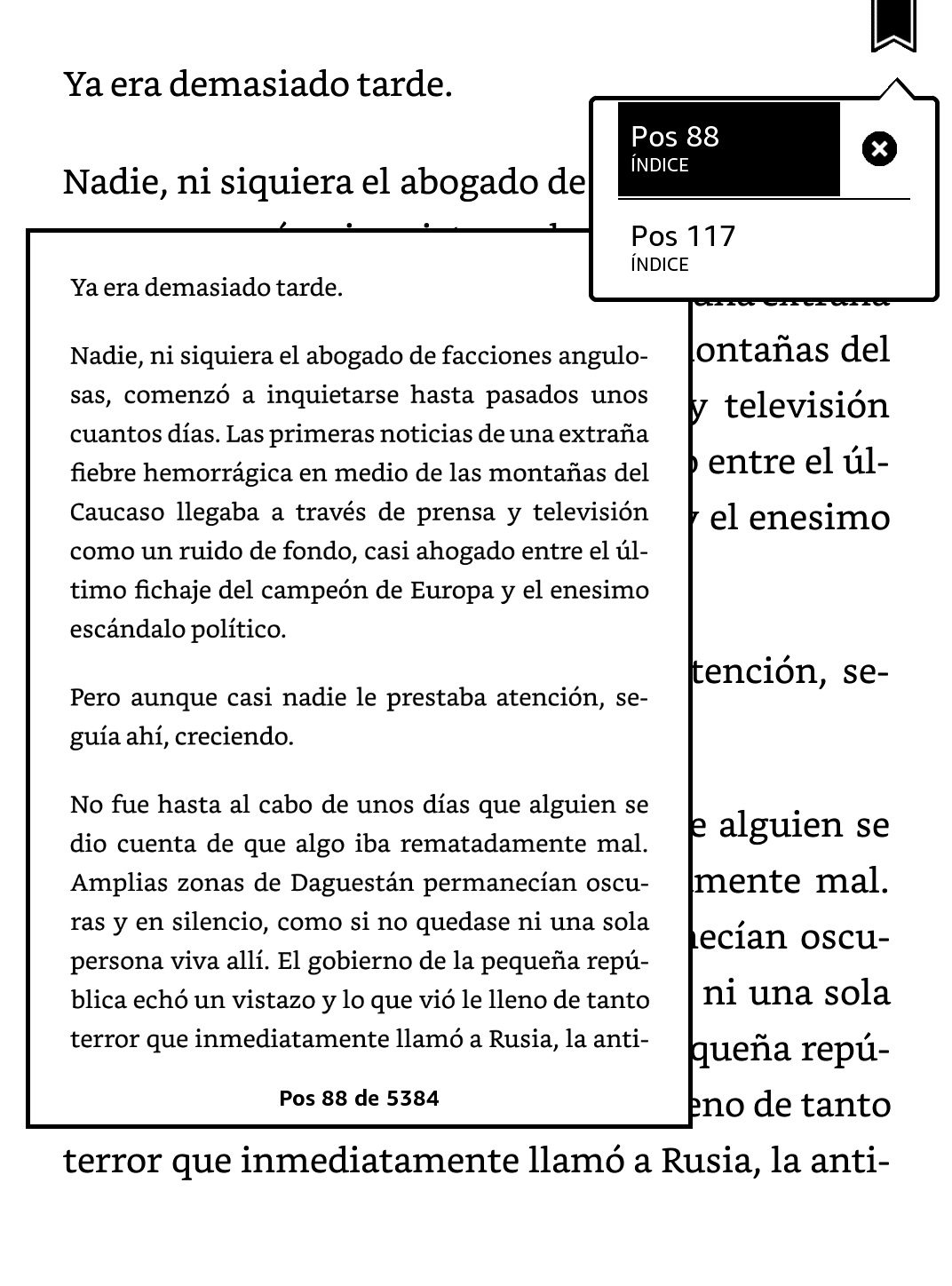 Al igual que ocurría en modelos anteriores, es posible marcar una página de forma muy sencilla, con tan solo dos pulsaciones, así como ver todos los marcadores que tenemos guardados en el libro. Pulsando sobre un marcador vemos una miniatura de la página, de forma que podemos saber rápidamente si es donde queremos ir.