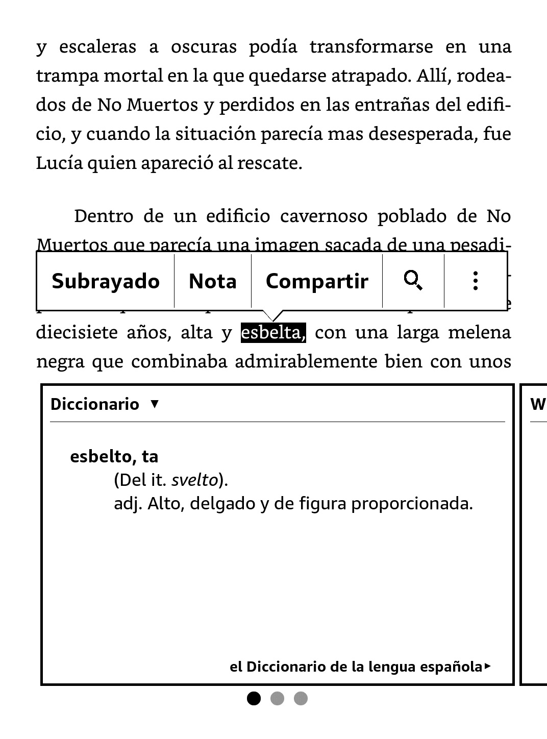 Al pulsar sobre una palabra, aparece una ventana con el significado de dicha palabra, la información existente en Wikipedia y la traducción a otro idioma.
