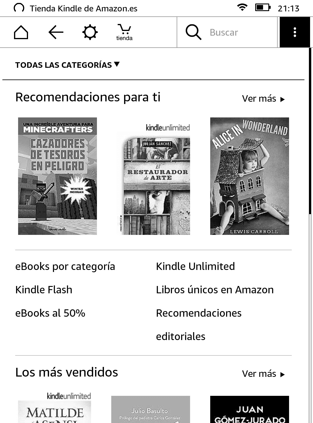 No solamente las letras de las páginas se ven mejor definidas, sino que las miniaturas de los libros que podemos ver en la portada se ven mucho más nítidas.