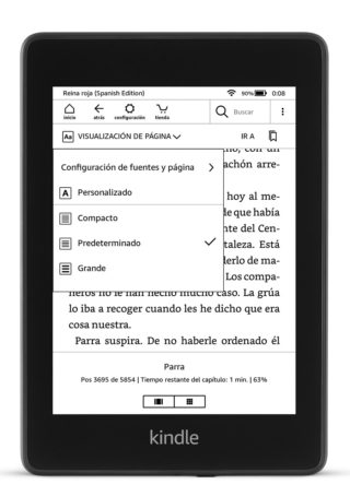 Por defecto, el Kindle Paperwhite incluye tres temas predefinidos: compacto, predeterminado y grande. No obstante, podemos crear temas propios que se ajusten a diversos tipos de libros.