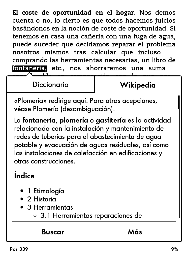 Esto viene a paliar uno de los inconvenientes de los libros electrónicos: la dificultad para moverse rápidamente a lo largo de las páginas, especialmente en libros que tienen secciones de referenci, por ejemplo mapas.