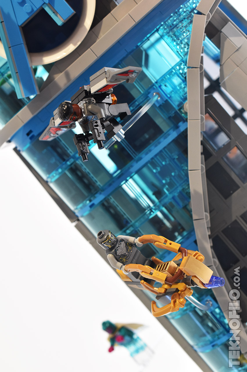 Desde el vestíbulo hasta la azotea, todas las plantas reproducen escenas con los héroes y villanos de la Saga Infinity. Incluye un conjunto de 31 figuras, más que en la mayoría de los demás sets de Lego, que permite recrear las batallas de la saga Infinity de multitud de formas diferentes.