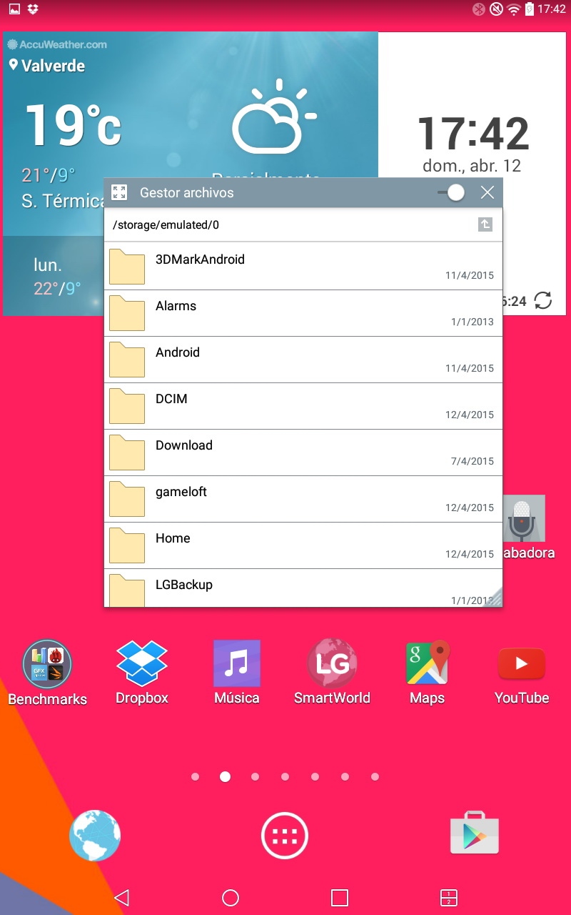 En cuanto a widgets, el LG G Pad apenas incorpora pocos widgets propios y ninguno de ellos es especialmente destacable. Como todos los fabricantes, incorpora su propio widget con la hora y previsión meteorológica, que es bastante atractivo.