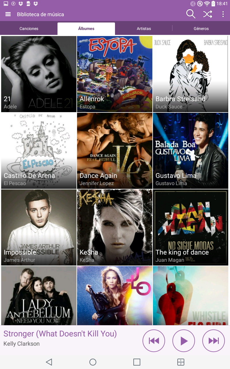 El LG G Pad incorpora un reproductor de música muy completo, que permite visualizar las canciones por título, álbum, artista, género, carpeta o dispositivo, pudiendo incluso acceder a ficheros remotos.