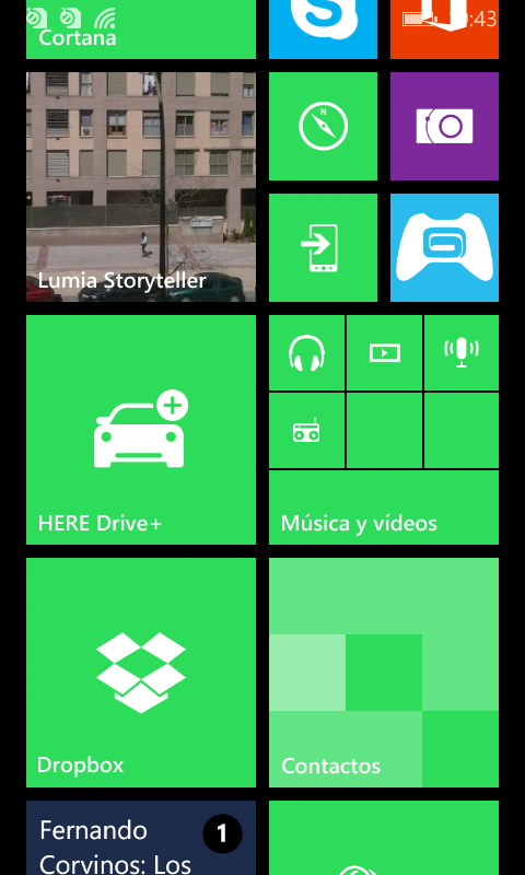 Aun con todo, la escasa densidad de píxeles del Lumia 532 hace que los textos pequeños sean difícilmente legibles y que tengamos que ampliar la pantalla para poder navegar por ciertas webs como elmundo.es. En la pantalla principal también apreciamos que los iconos y textos de las baldosas pequeñas se ven borrosos.