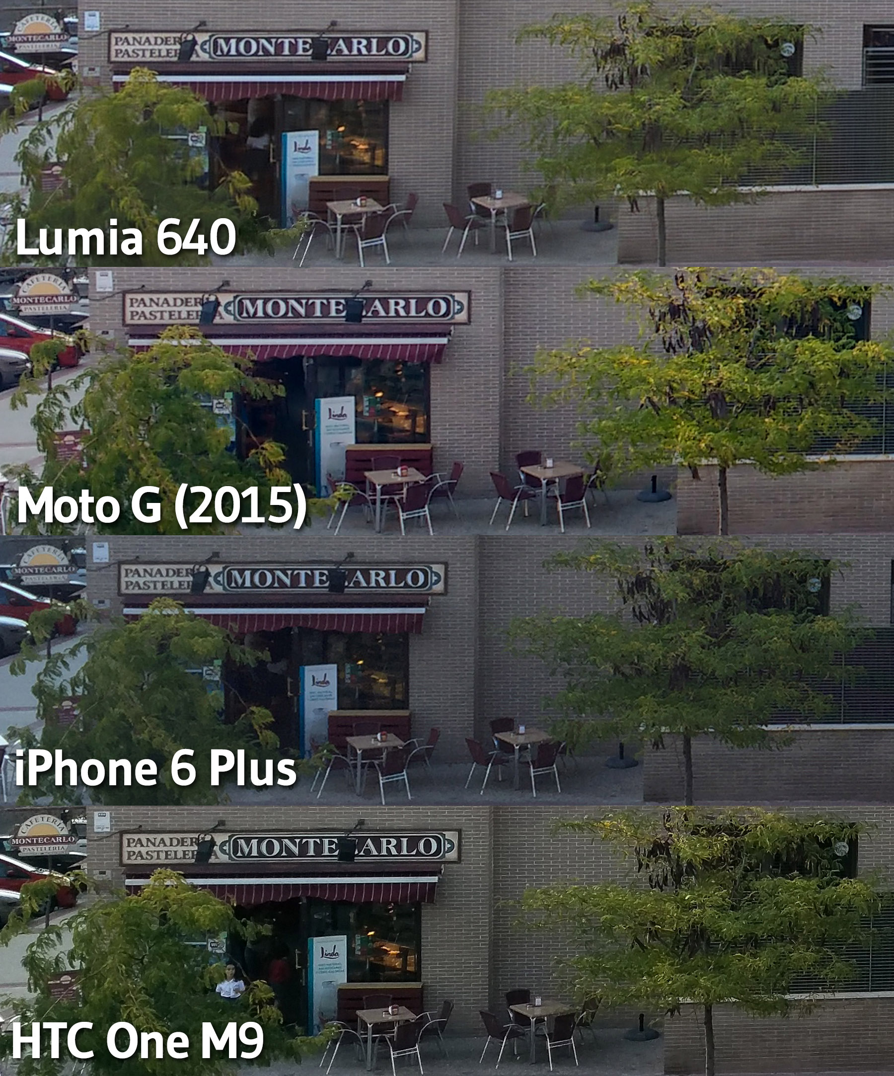 A continuación vamos a comparar la calidad de las imágenes captadas por el Moto G (2015) (13 MP) con las capturadas por el Lumia 640 (8 MP), iPhone 6 Plus (8 MP) y HTC One M9 (20 MP)