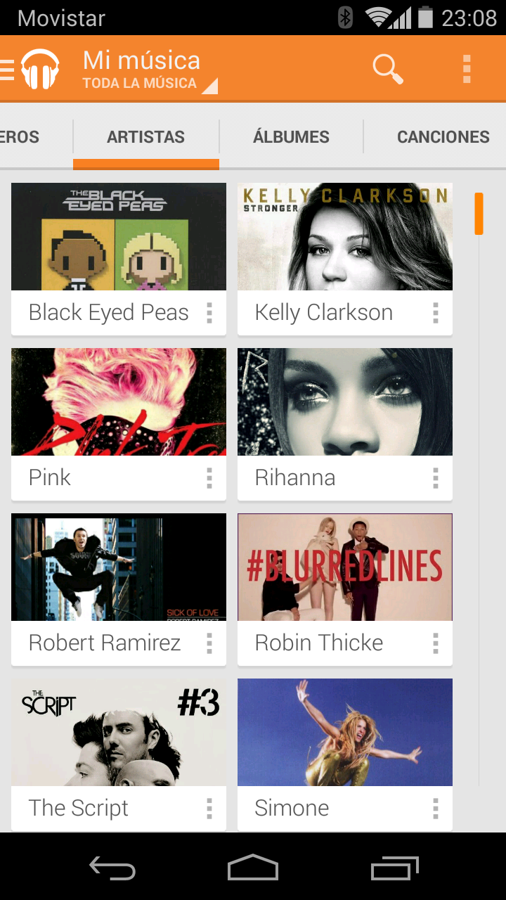 El Moto G emplea Play Music como reproductor de música por defecto. Play Music permite organizar nuestras canciones por géneros, artistas, álbumes y títulos.