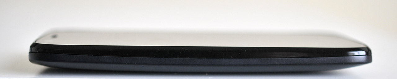 Moto G - frontalLa parte frontal del teléfono está ocupada principalmente por la pantalla de 4,5″, que está rodeada de un marco relativamente estrecho a izquierda y derecha, en línea con otros teléfonos similares.