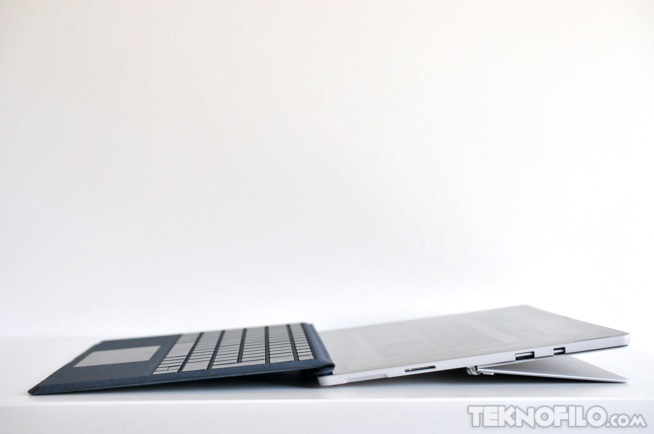 El reducido número de puertos de Surface Pro le permite mantener un perfil bastante delgado, ya que solo tiene 8,45 mm de grosor. Su peso es de solo 766 gramos (Core m3) o 786 gramos (Core i5 / i7), por lo que es más ligero que cualquier portátil.