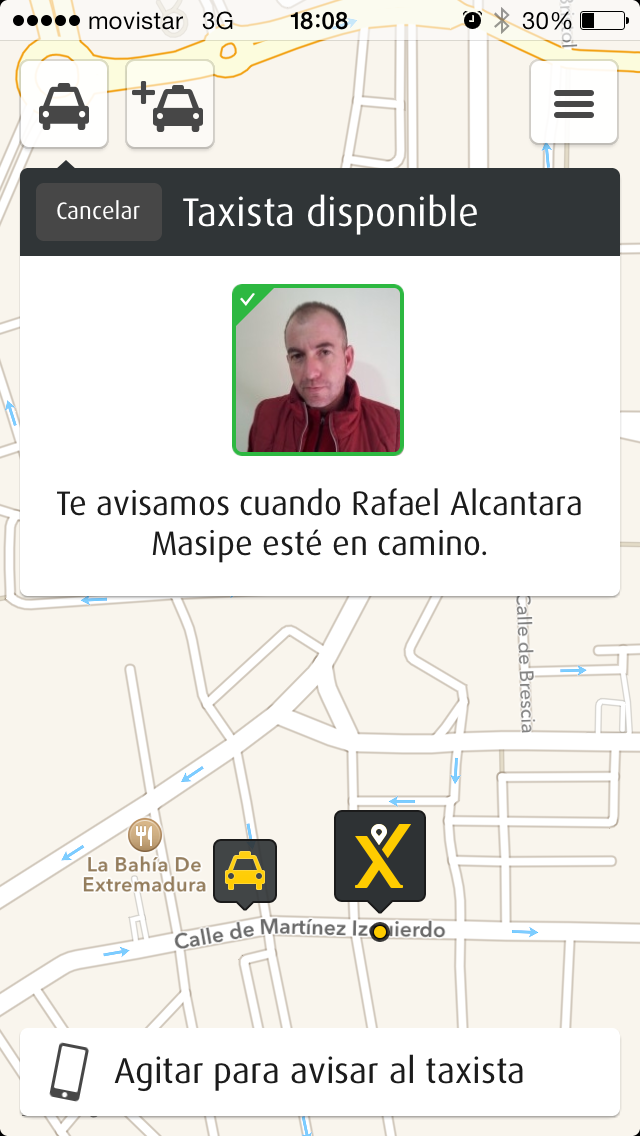 En mi caso he especificado que quería el taxi ahora y en menos de dos minutos ya estaba allí. Ha sido realmente rápido, aunque también es cierto que estaba en una zona bastante transitada. Durante el tiempo que ha tardado en llegar he podido ver en la pantalla cuál era el taxi que me había sido asignado y cómo se movía por las calles. Además se puede ver la foto del taxista, el modelo de coche, la matrícula e incluso es posible llamar directamente al taxista desde la aplicación.