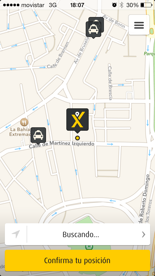 La prueba la he realizado en Madrid, solicitando un taxi alrededor de las 18:00 del día de hoy mediante un iPhone 5s. El proceso de solicitud es muy sencillo ya que la aplicación te ubica automáticamente en el mapa y, si la posición identificada no es la correcta, puedes corregirla manualmente.