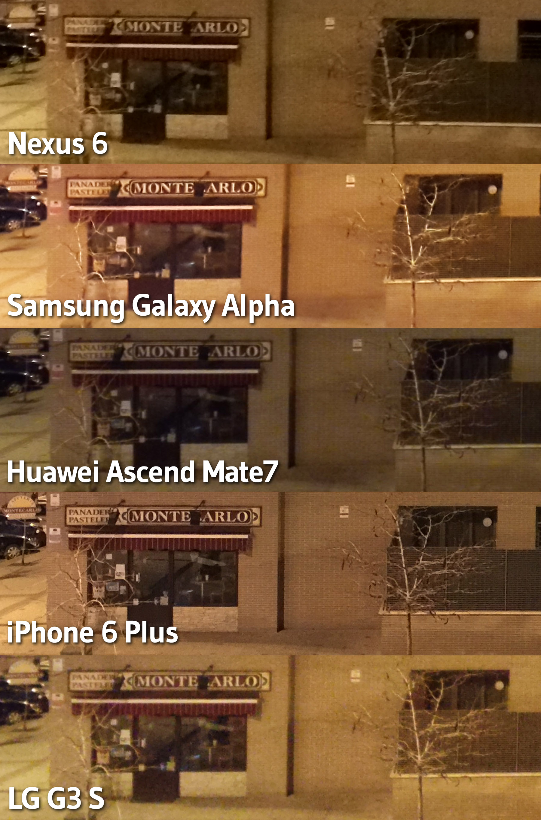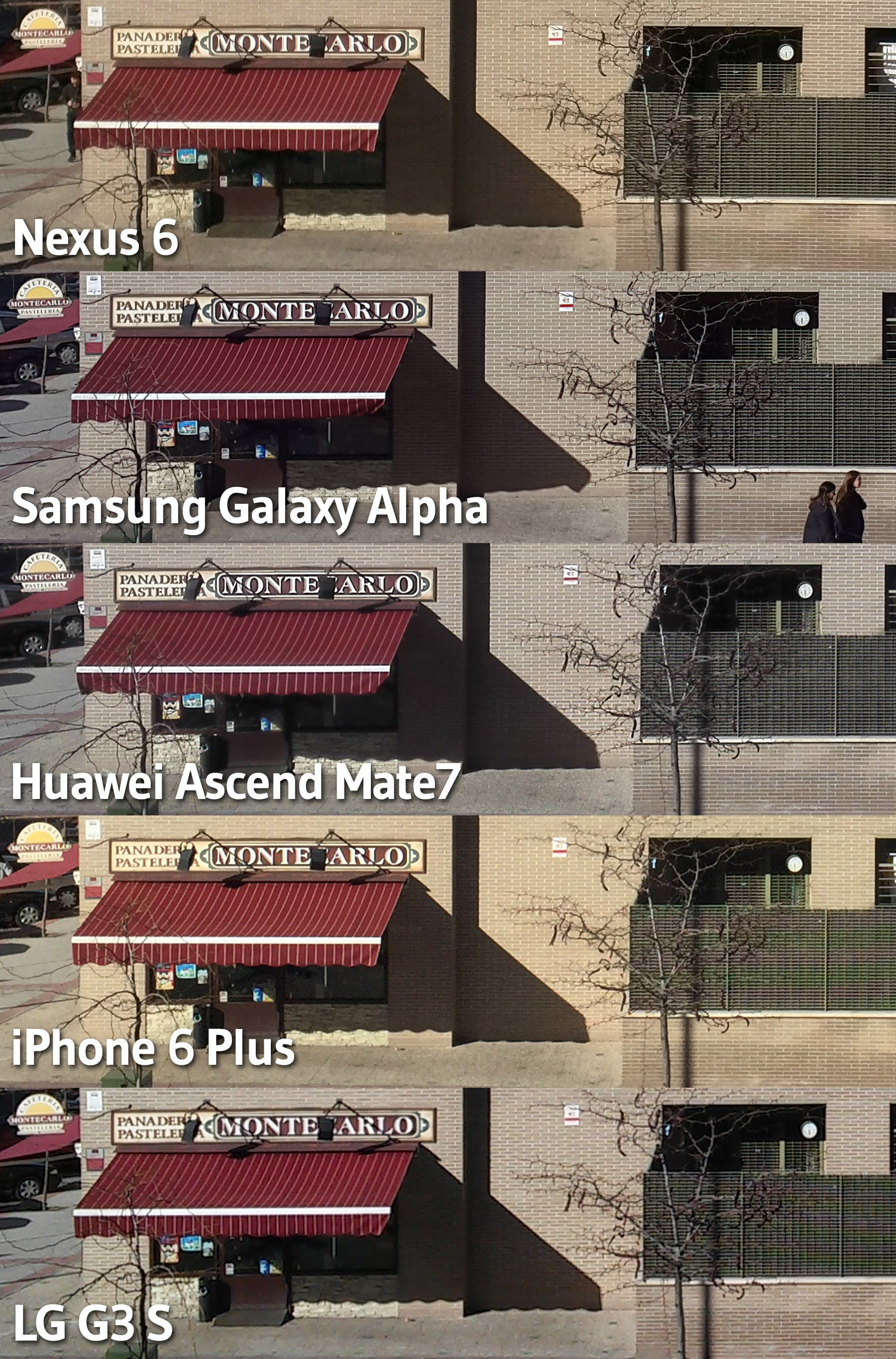 A continuación vamos a comparar la calidad de las imágenes captadas por el Nexus 6 (13 MP) con las capturadas por el Huawei Ascend Mate7 (13 MP), Samsung Galaxy Alpha (12MP), iPhone 6 Plus (8 MP) y LG G3 S (8 MP).