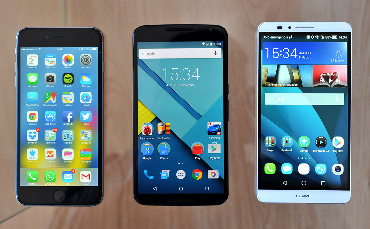 iPhone 6 Plus, Google Nexus 6 y Huawei Ascend Mate7