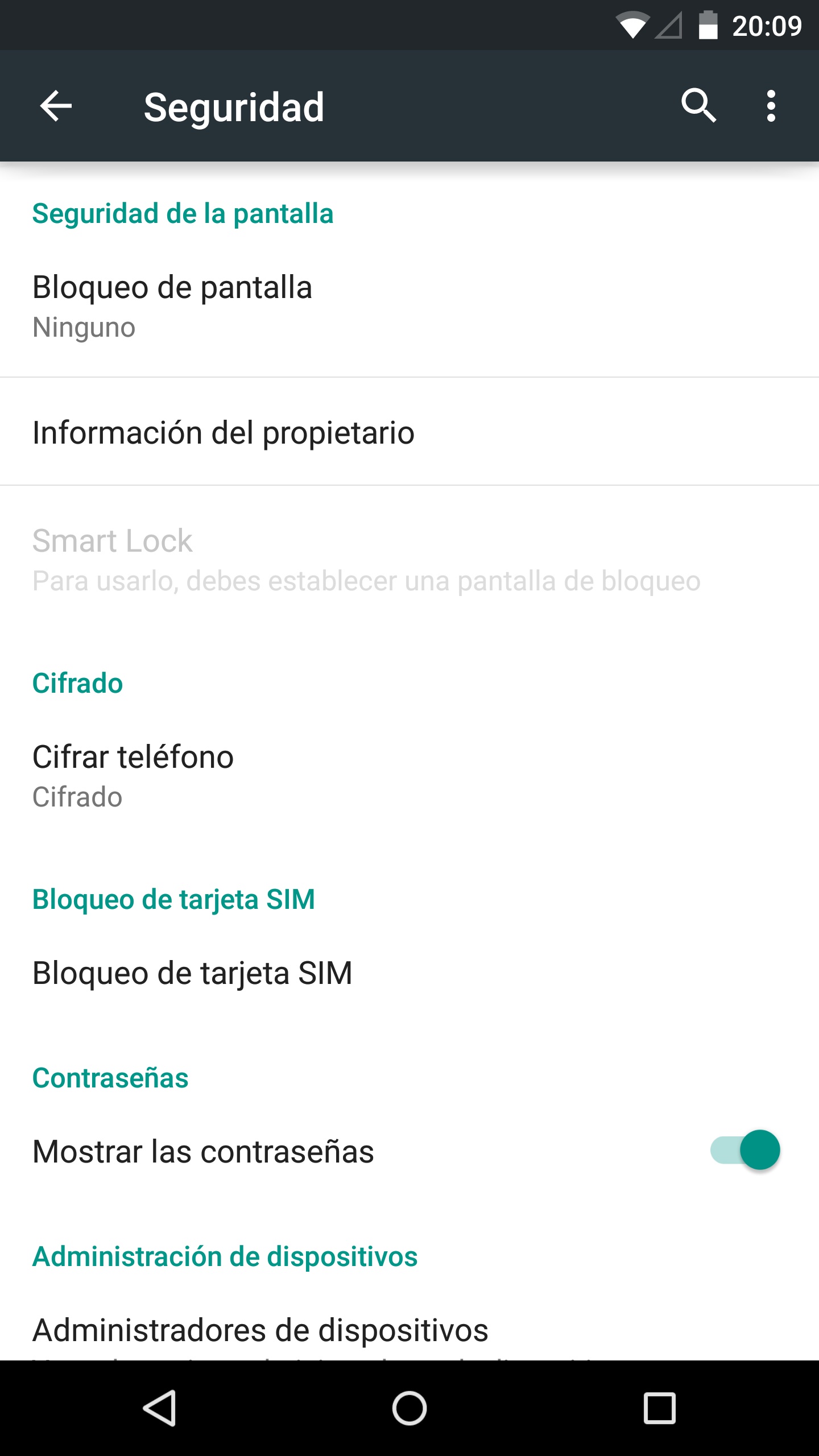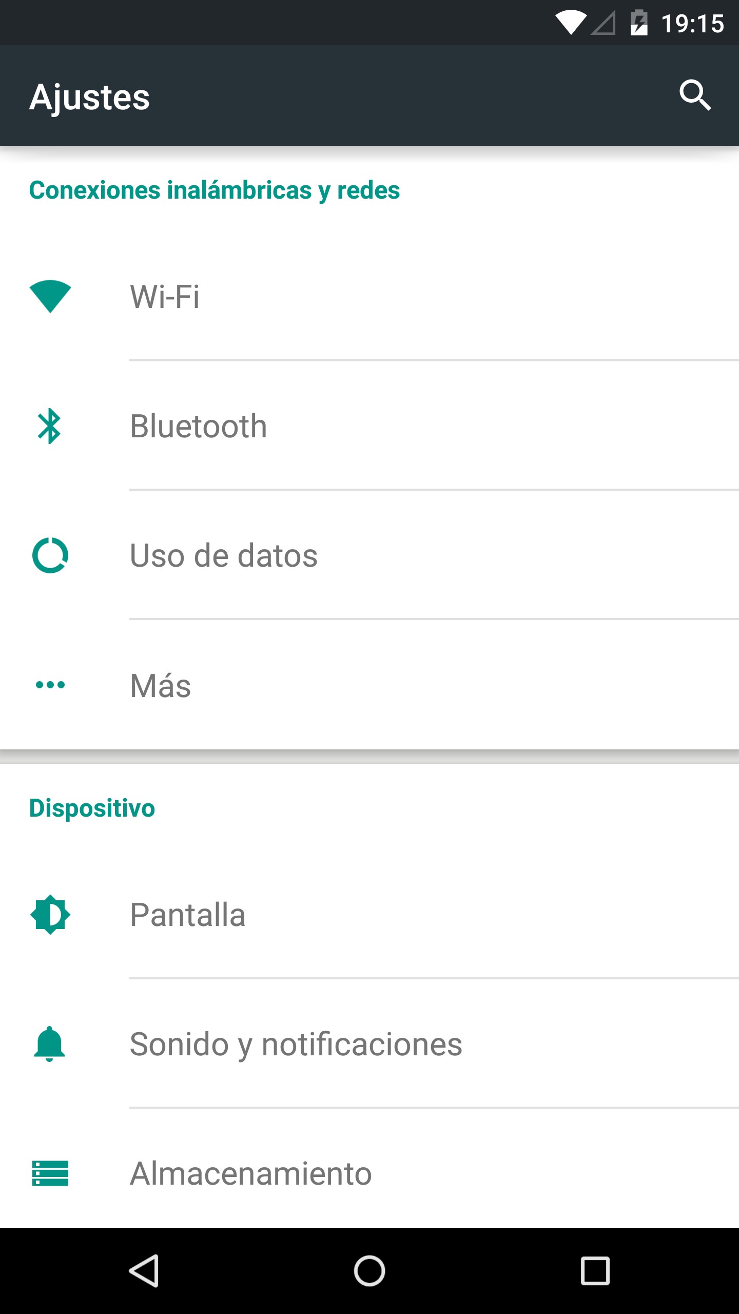 El Nexus 6 no dispone de botones físicos, sino que estos aparecen dibujados en la parte inferior de la pantalla cuando es necesario, como es habitual en los dispositivos de Google y cada vez en más teléfonos.