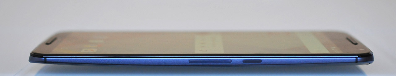 Motorola ha tratado de reducir el tamaño del teléfono estrechando los marcos de la pantalla al máximo, y de hecho son más finos que los del LG G3 a pesar de que los botones están en los lados y no en la parte de atrás.